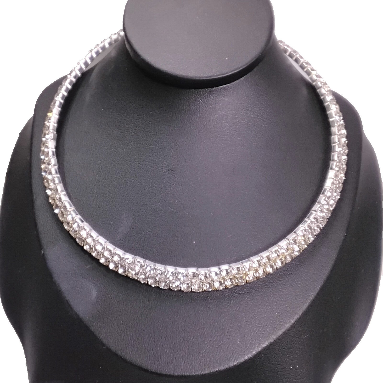 Reif 2-reihig Choker Halsketten Collier Kristall Cocktail Braut Ketten Statement